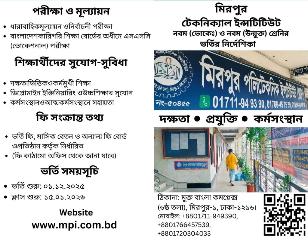নবম শ্রেণি (ভোকঃ) ও নবম শ্রেণি উন্মুক্ত শাখায় ভর্তি চলছে ! 2 Comments / By polytechnic / December 20, 2025 Notice: JavaScript is required for this content.