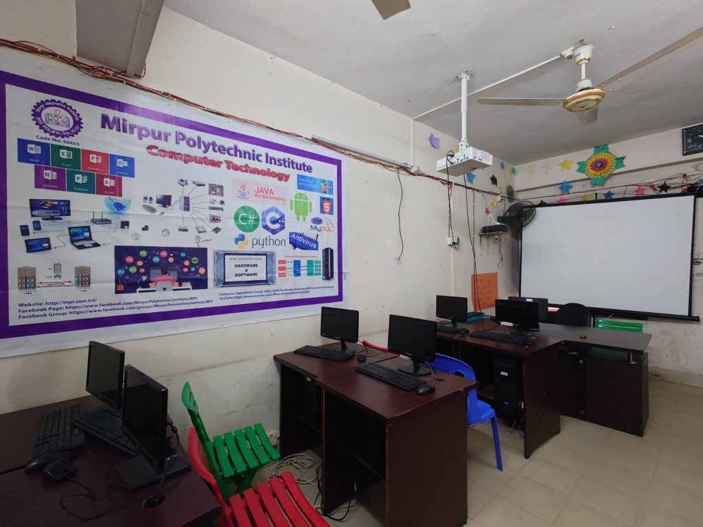 The department of Computer Technology was established at Mirpur Polytechnic Institute in 2010. The Department of Computer Technology is one of the Dynamic departments of Mirpur Polytechnic Institute. The main focus of the Computer department is on major areas of Web, Programming, Networking , Multimedia & Graphics, Application System Software, Hardware & Troubleshooting. The department is committed to the study and analysis of fundamental as well as applied problems. Teachers and students of the department work in solving problems in the fields of conventional and latest technology.